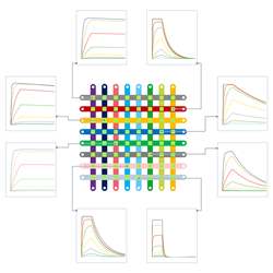 The ‘Triceratops’ SPR #64 system combines highest sensitivity detection with a novel microfluidics concept, which via the perpendicular rotation of the 8-channel flow cell, now facilitates the simultaneous reading of 64 sensor spots. This ingenious design extends SPR capabilities beyond previous limits, accelerating screening, kinetics, epitope characterization, condition scouting, concentration analysis, and thermodynamics. With the ‘Triceratops’ SPR #64, Bruker is now offering drug discovery customers the highest throughput in the industry with uncompromising data quality.