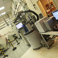 Bruker d-DNP polarizer shown (center) at UCSF, between Bruker 9.4T MRI (far left) and Fourier 80 NMR (right of polarizer). The novel d-DNP system enables >10,000x signal gains on 13C in high-field MRI and NMR systems.